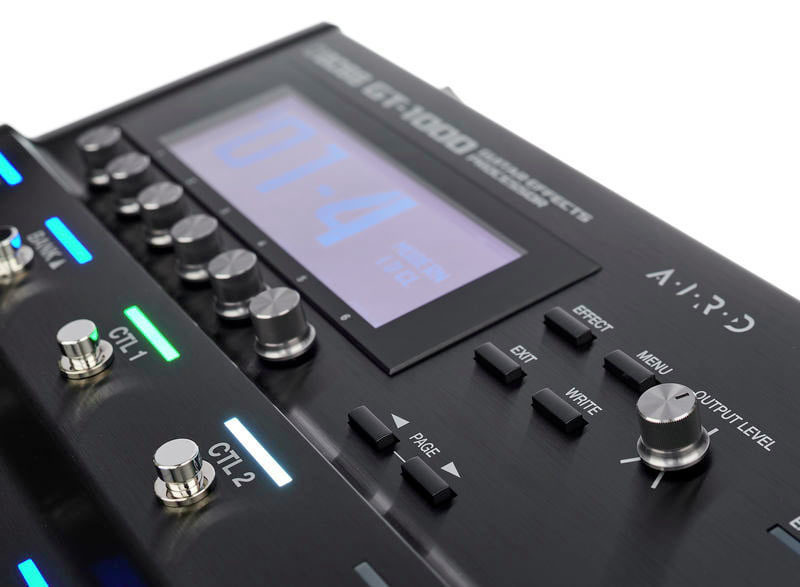 Благодаря большому дисплею GT-1000 и шести селекторным регуляторам процесс создания и редактирования звуков происходит просто и быстро. Для просмотра настроек патчей предусмотрено четыре различных формата экрана Play. Кроме того, для оперативного доступа к нужному параметру его можно запрограммировать на один из регуляторов. Тщательно продуманный формат отображения на дисплее сигнального тракта обеспечивает простоту настройки параметров, выбора блоков эффектов и изменения порядка их следования. Параметры выбранных эффектов можно выводить на дитсплей по уровням, чтобы иметь на экране всю необходимую информацию.