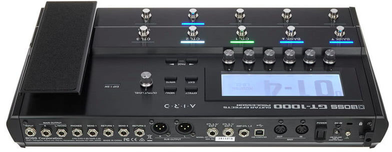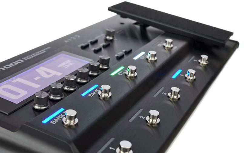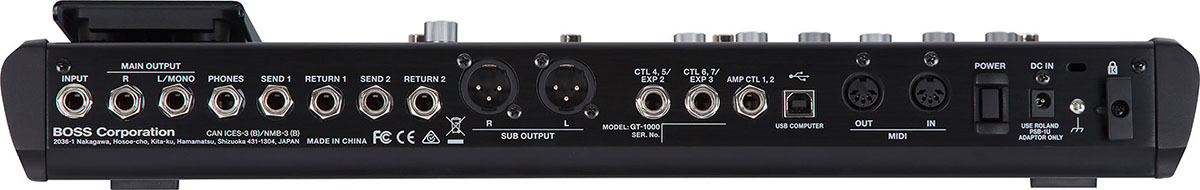 GT-1000 комплектуется десятью ножными переключателями и педалью экспрессии с выключателем под носком, обеспечивающими полный контроль над исполнением как на сцене, так и в студии. Если вы принадлежите к когорте продвинутых музыкантов, можно реализовать дополнительные функции управления с помощью внешних переключателей, педалей, по MIDI или USB. По умолчанию основные ножные переключатели запрограммированы на выбор патчей, банков патчей и трех назначений управления.