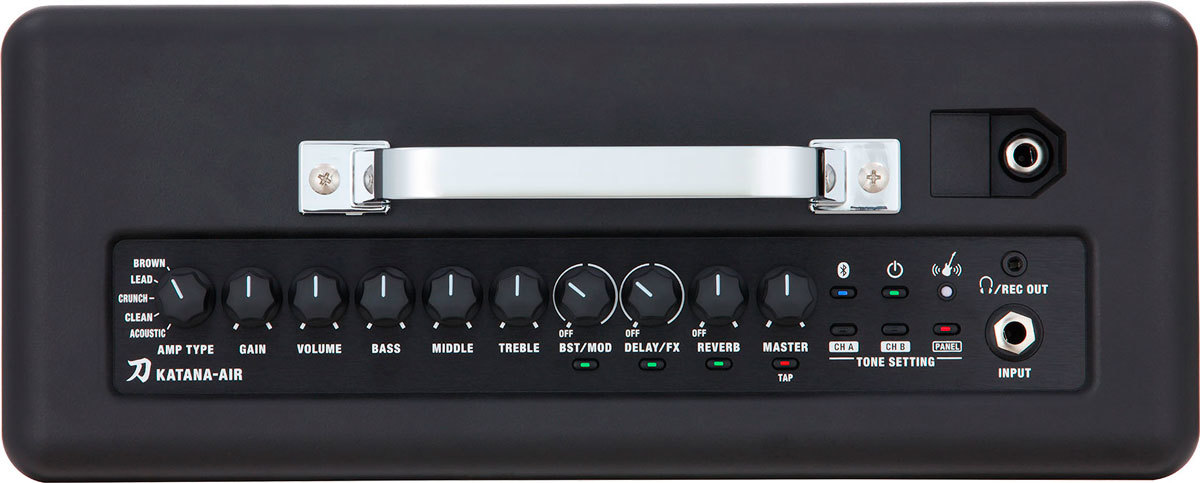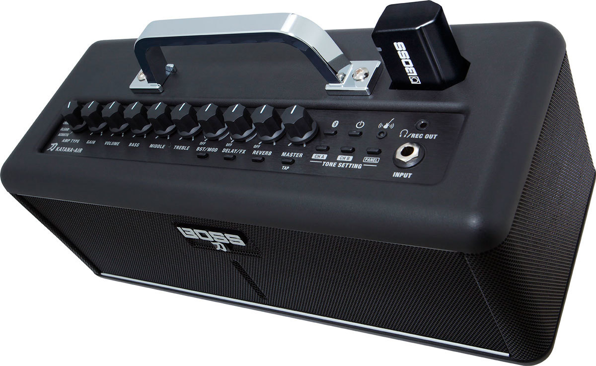 KATANA-Air, обладающий теми же тембрами и оборудованный теми же регуляторами настройки звука, что и самые эффективные усилители серии KATANA, предлагает вдохновляющие на творчество звуки, которые могут использоваться для игры в любом музыкальном стиле. Пять моделей усиления гарантируют разнообразие тембров, от прозрачного чистого звучания и до уникального переусиленного "коричневого" звука, фирменного знака компании BOSS. Имеется даже режим Acoustic, оптимизированный для игры на электроакустической гитаре. В усилитель интегрировано более 50 эффектов компании BOSS, включая модуляционные, задержку и реверберацию, которые были оптимизированы для работы в паре со стереофонической аудиосистемой комбо KATANA-Air. Для оперативной загрузки наиболее часто используемых настроек усилителя и эффектов предусмотрена память на шесть пресетов.