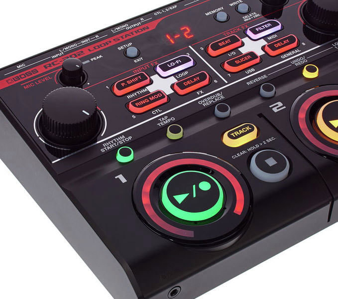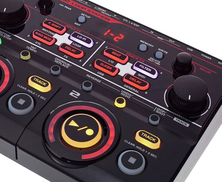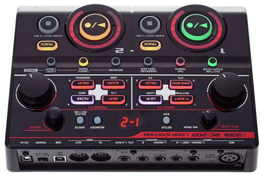 Обладающий мощными мультиэффектами, RC-202 предлагает намного более мощные возможности обработки в реальном времени по сравнению с конкурирующими моделями. Четыре процессора Input FX и четыре процессора Track FX могут работать одновременно и обрабатывать лупы как при записи, так и при воспроизведении. При записи можно обрабатывать звук эффектами Input FX — такими как P. Shift, Lo-Fi, Ring Mod и так далее. Трековые алгоритмы, такие как Beat, Filter, Slicer и другие, позволяют использовать различные сэмплерные и диджейские эффекты во время воспроизведения. Для оперативного управления эффектами предусмотрены большие регуляторы с удобным хватом, а для активации/деактивации — специальные кнопки панели.