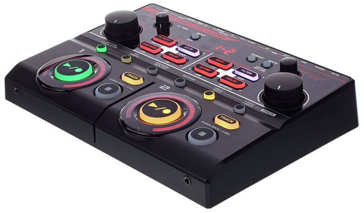 - Одновременное воспроизведение двух стереофонических фразовых треков с раздельными кнопками управления и индикацией статуса лупов