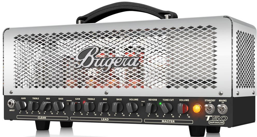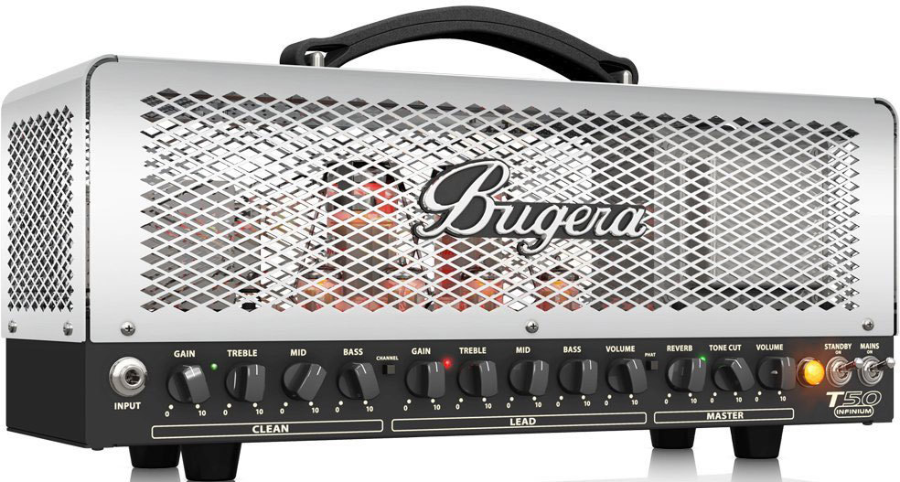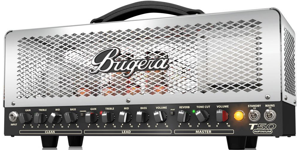 Усилитель оснащен двухканальным предусилителем, обеспечивающим звучание Clean и Lead. В каждом из каналов, построенных на лампах 12AX7, предусмотрены регулировки тембра по трем полосам (НЧ, СЧ, ВЧ), усиления, а в канале Lead имеется и регулятор громкости. В мастер-секции Bugera T50-INFINIUM предусмотрены эффект реверберации, настраиваемый фильтр и общая регулировка громкости. Дополнительно с помощью кнопки Phat можно включить режим бустера одновременно для обоих каналов.