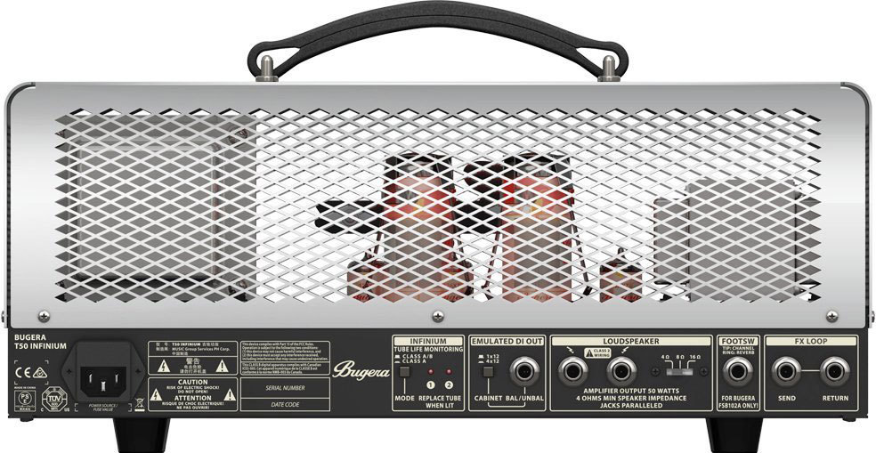 Выходные каскады Bugera T50-INFINIUM могут работать в классах A или A/B (выбирается с помощью переключателя на задней панели), что позволяет получить более гладкое, или, напротив, агрессивное звучание. Режимы работы ламп контролирует фирменная система INFINIUM, которая не только подскажет, когда придет время их замены, но и автоматически настроит параметры для максимального продления срока службы (или после установки новых ламп).