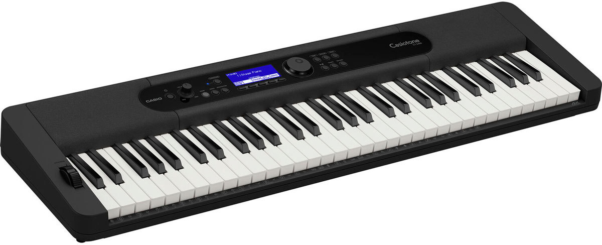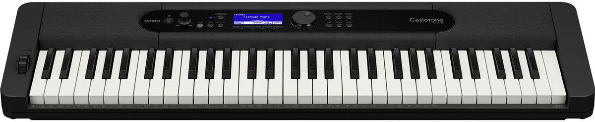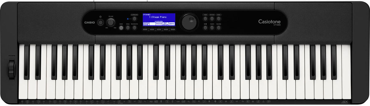 CT-S400 оснащен 61 полноразмерной клавишей фортепианного типа с чувствительностью к касанию в элегантном стильном корпусе, весом менее 5 кг. Легко читаемый ЖК-дисплей и интуитивно понятное управление предоставляют все необходимое для воплощения вашей музыки в жизнь.