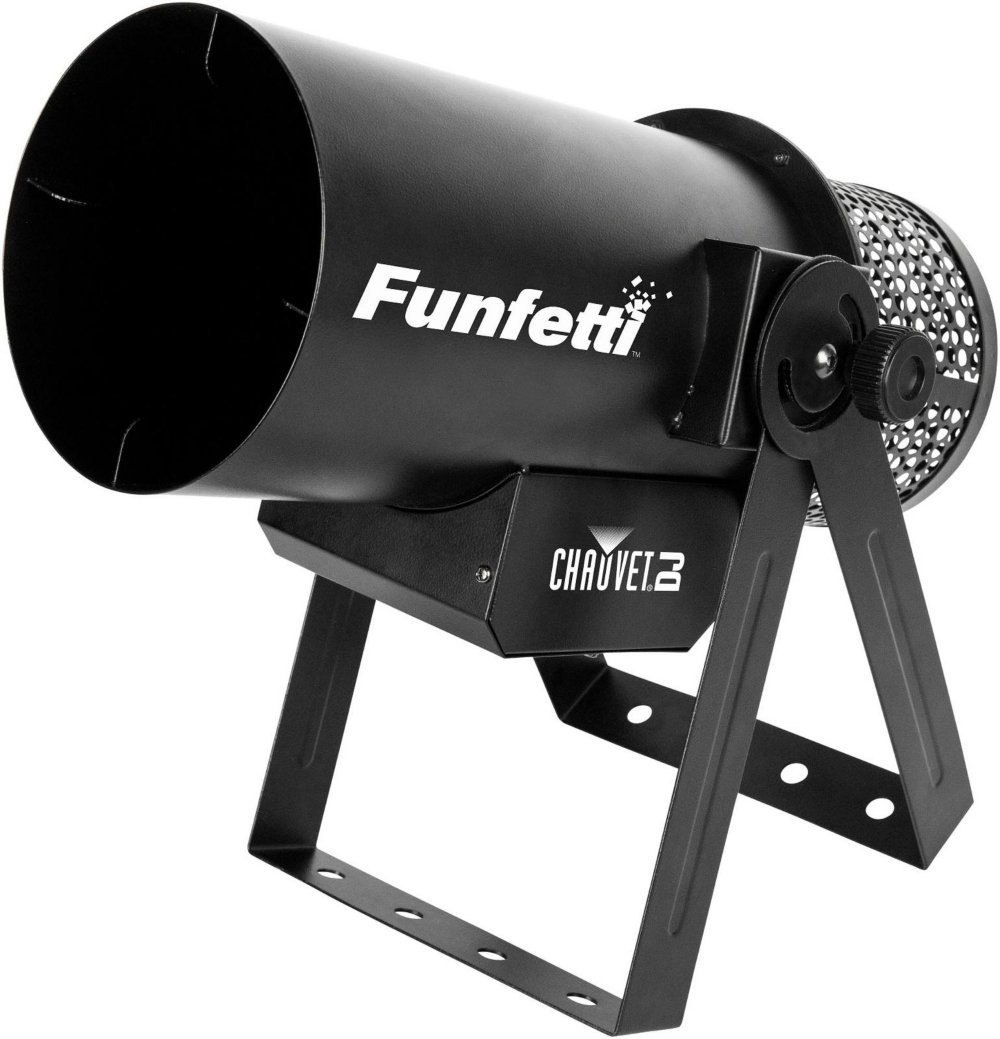 Funfetti Shot от Chauvet – машина для запуска конфетти, настройки и работа с которой выполняется одним человеком. Она идеально подходит для использования на концертах, вечеринках и других культурно-развлекательных мероприятиях. Для работы данной конфетти-машины не требуется сжатый воздух или углекислый газ.