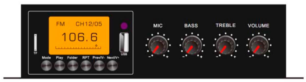 - Регуляторы громкости Mic и Master, регуляторы низких и высоких частот.