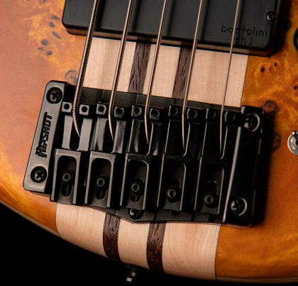 Конструкция струны сквозь корпус способствует расширению тонального диапазона, увеличению пробивной способности и сустейна, идеально подходит для бас-гитар с мензурой 34" с их натяжением струн и сфокусированным звучанием.