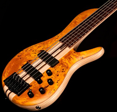 Африканская древесина панга панга имеет характеристики схожие с венге и производит плотное, последовательное звучание, которое отлично сочетается со сквозной конструкцией крепления грифа.