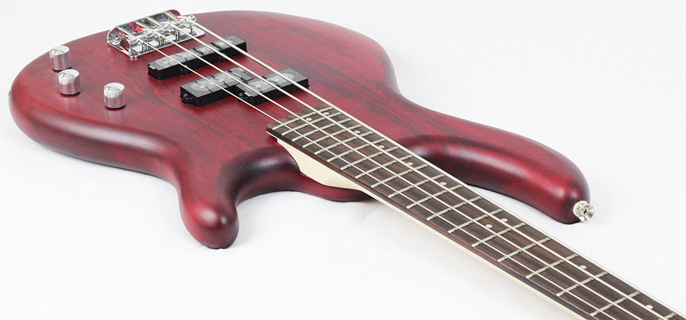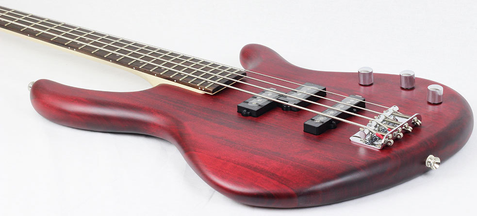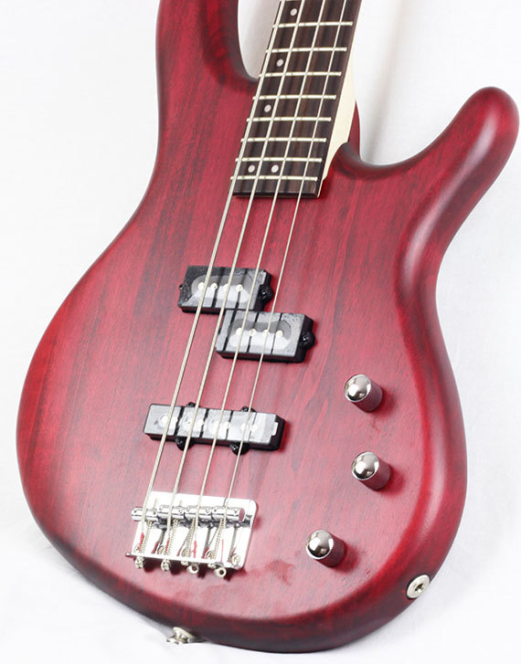 Один из самых удачных бюджетных басов, из всех на которых приходилось играть. Очень добротная сборка - механические детали, накладка и лады, качественная и аккуратная пайка. Довольно удобный профиль грифа - несколько широковат, с минимальным радиусом и матовым покрытием тыльной части. 24 лада позволяют охватить довольно обширный нотный диапазон. Из датчиков - P-образный хамб и сингл, дающие вместе неплохой пробивной звук. Вполне солидный внешний вид - матовый темно-красный корпус. В целом - новичкам рекомендую.
