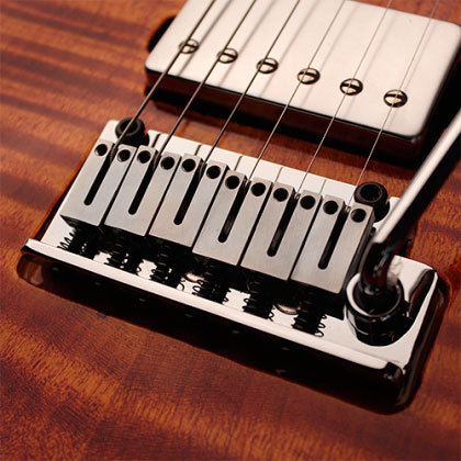 Эта бескомпромиссная тремоло система включает в себя седла из нержавеющей стали, стальной цельный блок и стальную опорную пластину, что обеспечивает значительно улучшенную стойкость, более быструю и резкую атаку и более согласованный и сбалансированный основной тон. Утопленный блок позволяет подтягивать струны, чтобы поднять высоту звучания, а также опускать их для понижения звучания, обеспечивая дополнительную универсальность тремоло.