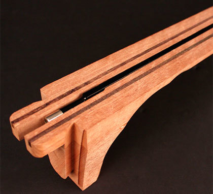 - Гриф: красное дерево, усиленный вставками из орехового дерева