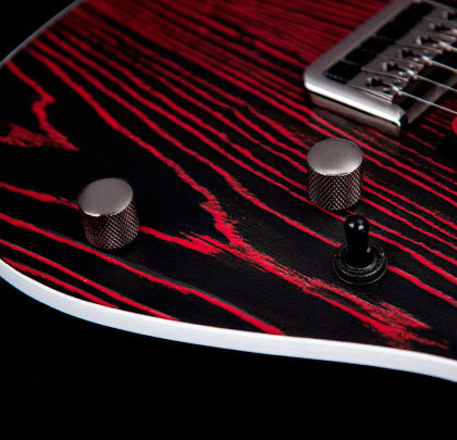 Топ гитары толщиной 15мм изготовлен из болотного ясеня и был подвергнут пескоструйной обработке, что придало многослойную «травленую» структуру. Ясень и красное дерево отлично сочетаются, создавая теплый и плотный средний диапазон со сверкающими и пробивными верхами для четкости в миксе.