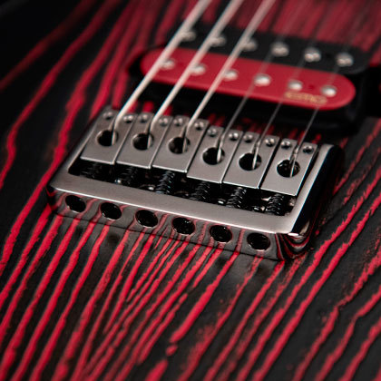 Готический, темный инструмент с матовой отделкой, подчеркивающей текстуру древесины. Подобранные по цвету хамбакеры EMG RetroActive Super77 хорошо зарекомендовали себя на выпущенных ранее моделях серии KX300 и отлично подходят для корпуса из красного дерева.