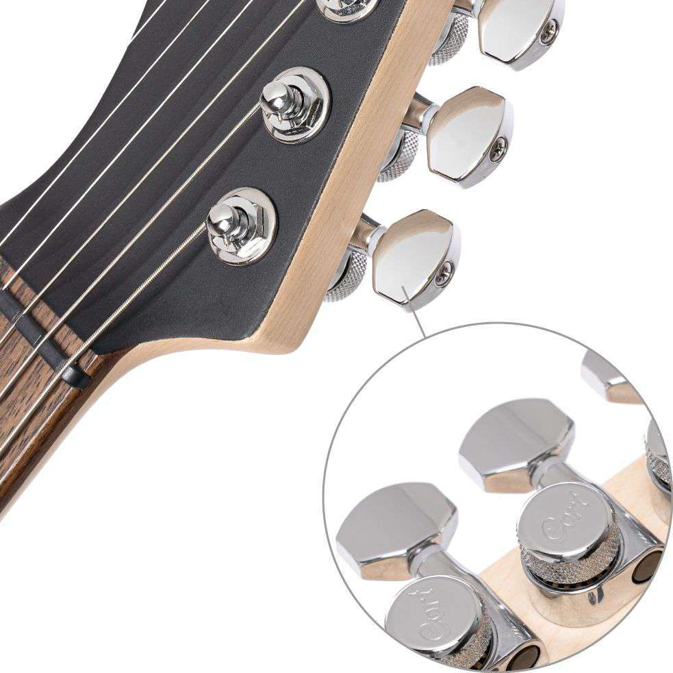 Колковая механика Cort staggered с блокировкой устраняет проскальзывание струн, обеспечивая точную и стабильную настройку, а также более быструю смену струн.