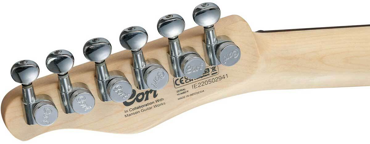Колковая механика Cort staggered с блокировкой устраняет проскальзывание струн, обеспечивая точную и стабильную настройку, а также более быструю смену струн.