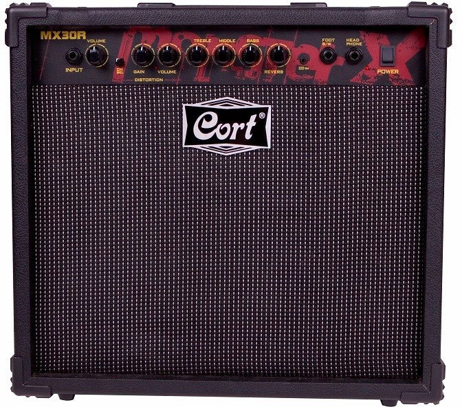 CORT MX30R - гитарный комбоусилитель, 8" динамик, 30 ватт, с пружинным ревербератором. Усилитель MX30R имеет переключаемые 2 канала предварительного усиления. Канал Clean усиливает сигнал без искажений. Канал Overdrive служит для получения эффекта перегрузки. Вы можете добавить реверберацию с помощью встроенного пружинного ревербератора. К специальному гнезду можно подключить ножной переключатель, которым можно управлять включением и выключением пружинным ревербератором. Для подключения внешних гитарных эффектов в комбоусилителе имеются гнезда для выхода на процессоры и входа сигналов от процессоров. Трех полосный эквалайзер позволяет подстроить тембр вашей гитары. Для занятий, чтобы не мешать окружающим, можно подключить наушники. Вы можете подключить CD/MP3 проигрыватель к специальному гнезду.