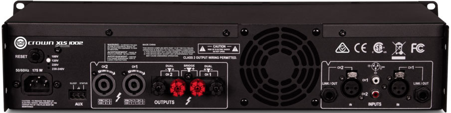 Частотный диапазон – от 20 Гц до 20 кГц. В конструкции модели предусмотрена эффективная защита акустических систем – лимитеры Peakx™. XLS 1002 устанавливается в рэк, имеет стандартную ширину 19 дюймов (48.3 см), рэковую высоту U2 - 8.9 см. Возможно последовательное подключение усилителей, для чего предусмотрены дополнительные выходы.
