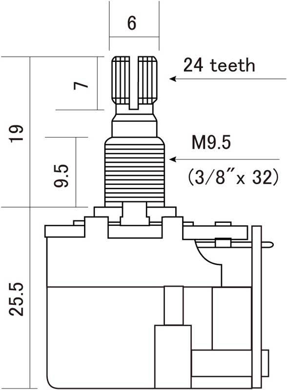 CTS A250-PP гитарный потенциометр, 250 кОм, push-pull, логарифмический