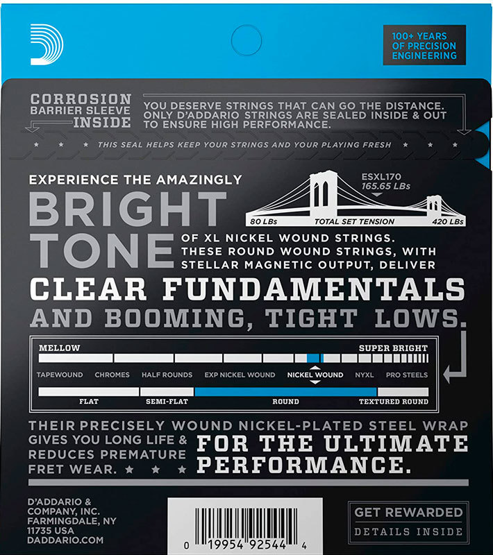 Струны D'Addario XL с никелевой обмоткой для электрической бас-гитары заслужили мировую известность как «Выбор исполнителя» среди музыкантов всех жанров и стилей, играющих на басовых инструментах.