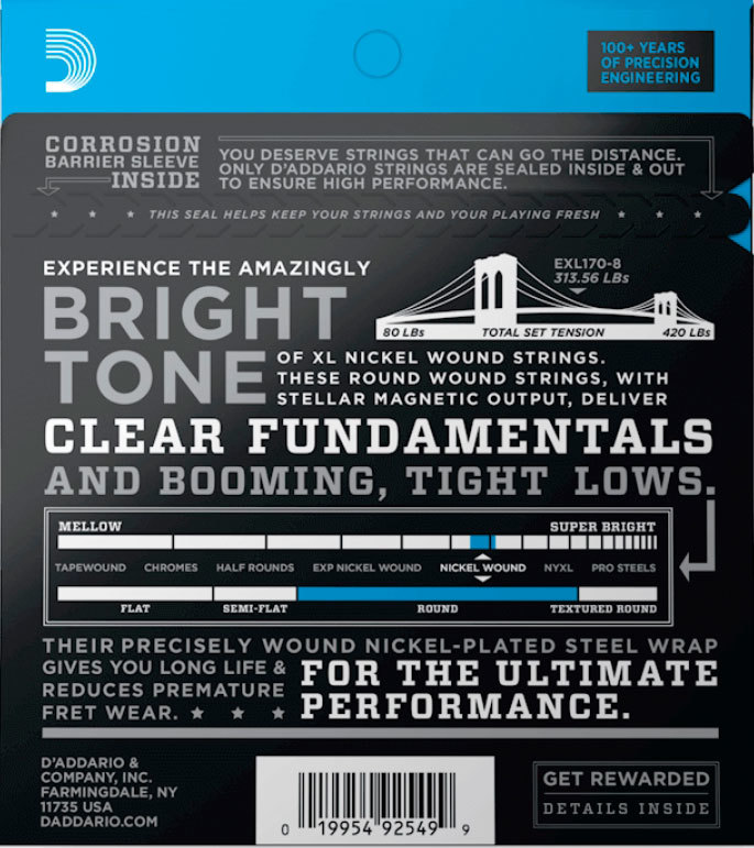 - 8-струнная версия самого продаваемого комплекта струн для бас-гитар.