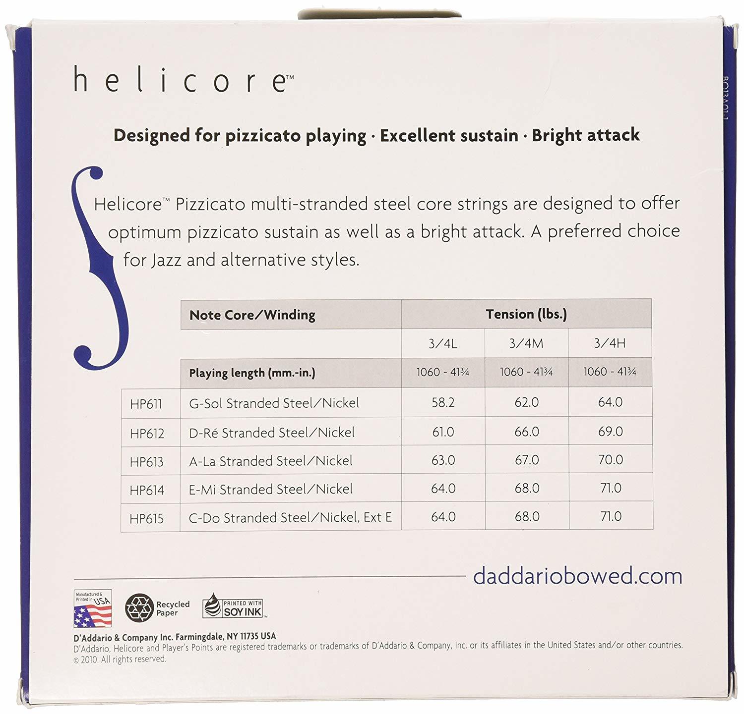 D'Addario HP610 3/4H Helicore Pizzicato комплект 4 струны контрабаса 3/4, высокое натяжение (Heavy Tension).