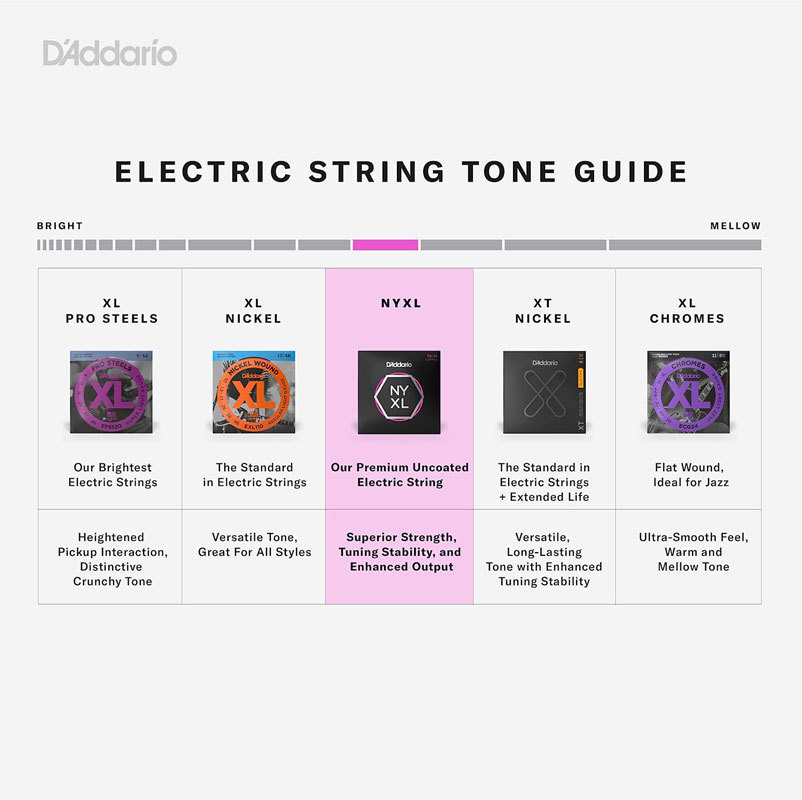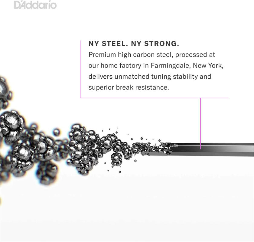 Струны NYXL созданы в Нью Йорке (США) на основе сплава эксклюзивной высокоуглеродистой стали для беспрецедентной прочности. Улучшеная стабильность строя по сравнению с традиционными струнами из никелированной стали - быстрее настраиваются и дольше держат строй. Струны с обмоткой имеют улучшенное звучание в среднечастотной области (1 - 3.5кГц) – увеличенный презенс и кранч хорошо прорезают микс. Безопасная для окружающей среды, устойчивая к возникновению коррозии упаковка для струн.