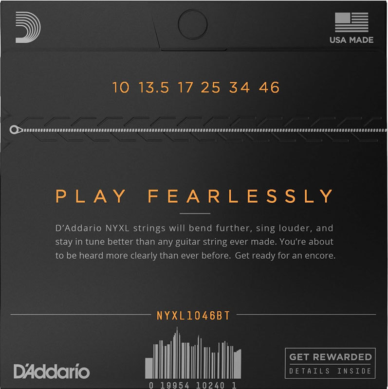- Размеры струн NYXL1046BT: 10-13-17-25-34-46