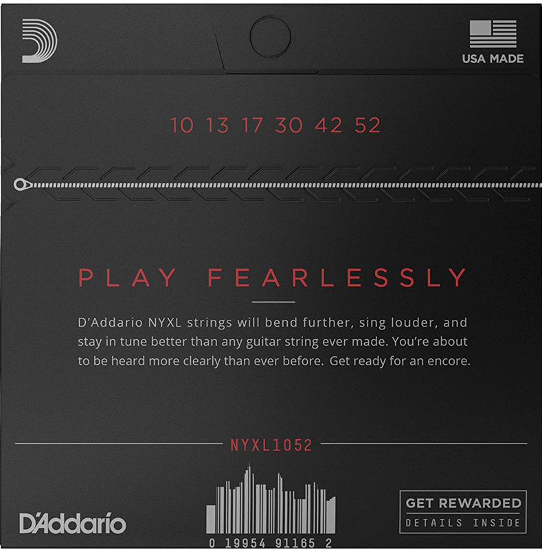 - Размеры струн NYXL1052: 10-13-17-30-42-52