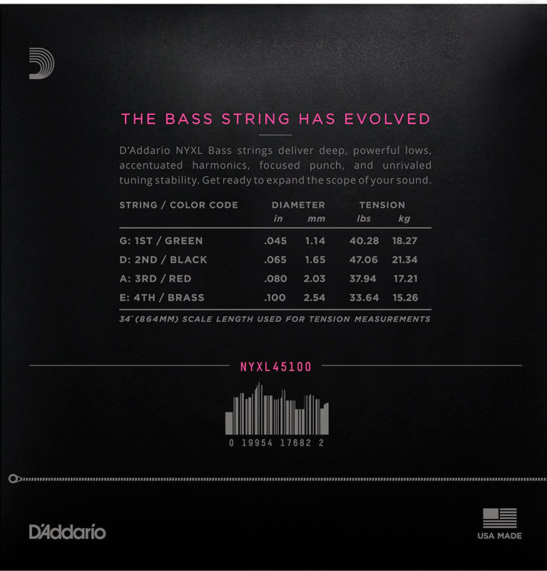 - Размеры струн D'ADDARIO NYXL45100: 45-65-80-100