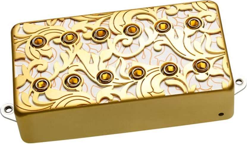 Разработанный для фирменной гитары Ibanez PIA Стива Вая, нековый звукосниматель UtoPIA™ отличается специальной крышкой в стиле барокко с лазерной резкой поверх золотого узорчатого слоя.