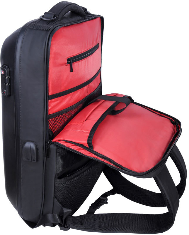 - Рюкзак меет два внешних выхода USB для пауэр банка и выход jack 3.5 mm для наушников.