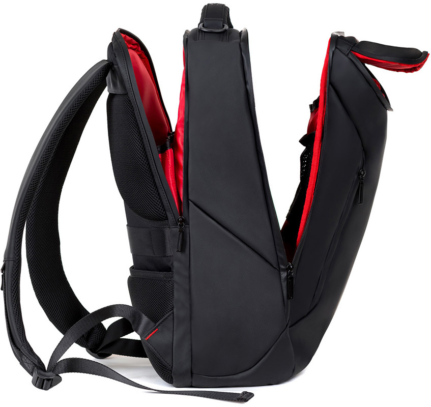- рюкзак имеет три основных отделения, 4 внешних кармана на молнии и один боковой карман без молнии для небольшой бутылки воды или зонта