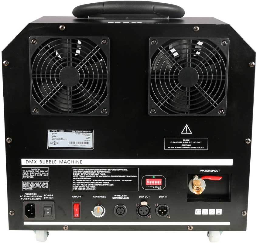 P-1000Y с двумя стержнями для генерации пузырьков и вентиляторами производит огромное количество крупных пузырьков и одновременно создает дополнительную плавучесть, которая позволяет пузырькам подниматься высоко в воздух. Пластиковый резервуар также предотвращает коррозию и протечки. Ручка, прикрепленная к корпусу, и встроенные колеса облегчают транспортировку.