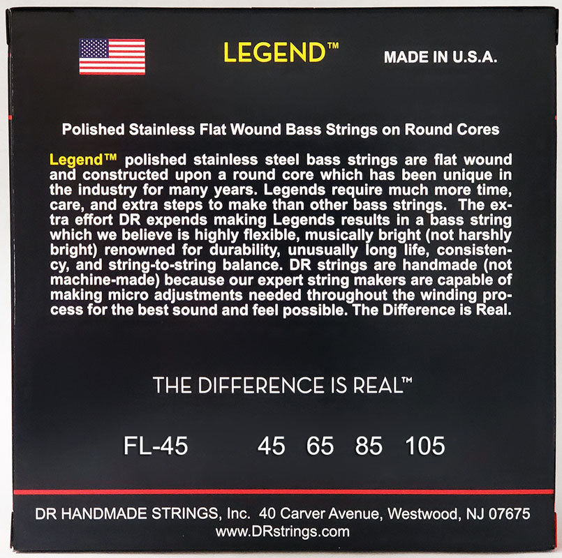 DR FL-45 LEGEND - струны для 4-струнной бас-гитары, плоская обмотка, нержавеющая сталь, 45 - 105