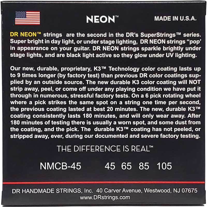DR NMCB-45 - струны для бас-гитары. Материал обмотки - Никелированная сталь. Обмотка - круглая. Неоновые (цветные). Толщина - 45-105.