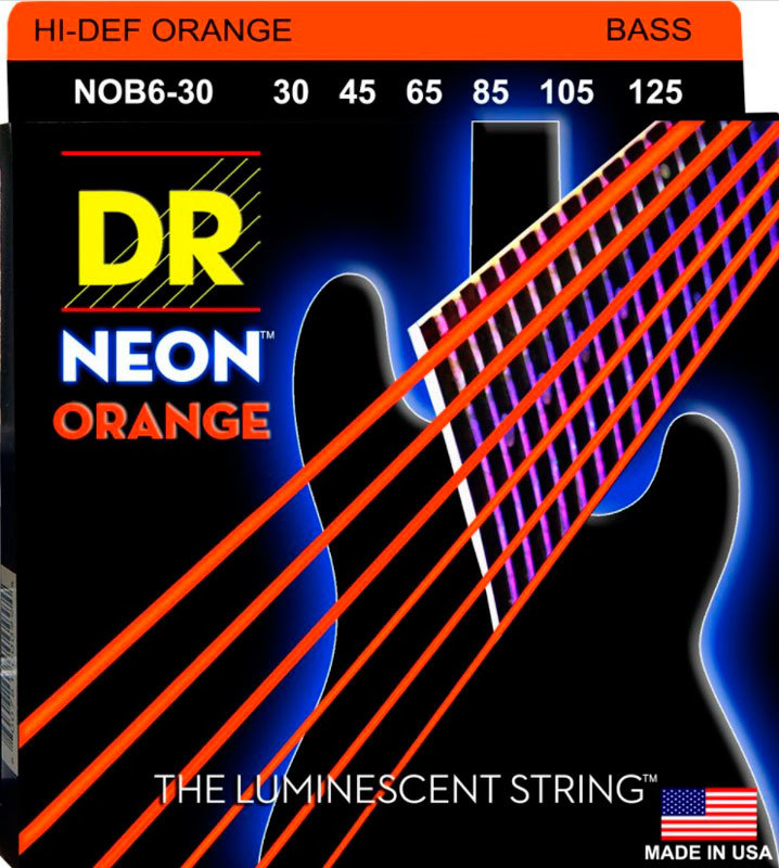 DR NOB6-30/120 - HI-DEF NEON струны для 6-струнной бас- гитары, с люминесцентным покрытием, оранжевые 30 - 120