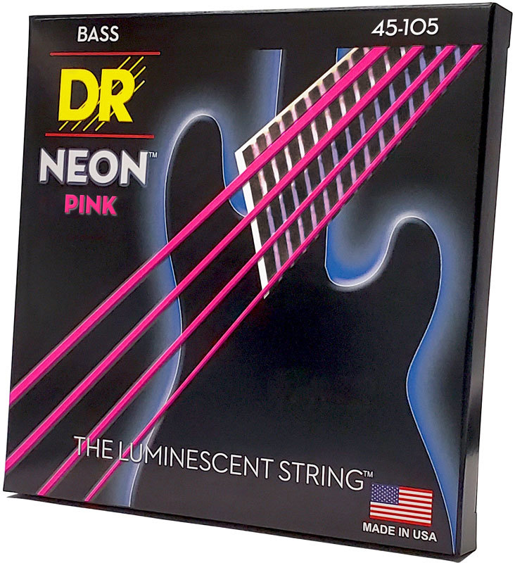 DR NPB-45 NEON HiDef Pink струны для бас гитары, светящиеся в УФ лучах, цвет Pink, 45-105 Medium 45, 65, 85, 105.