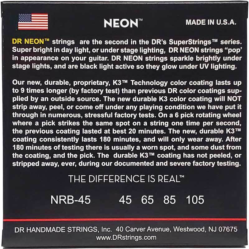 DR NRB-45 - струны для бас-гитары. Материал обмотки - Никелированная сталь. Обмотка - круглая. Неоновые (цветные). Толщина - 45-105.