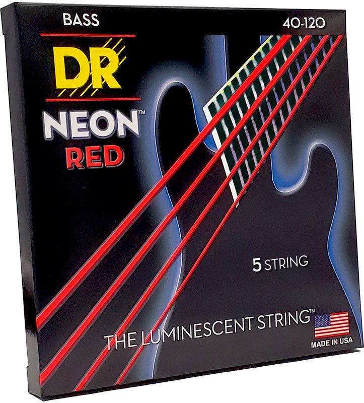 DR NRB5-40 - HI-DEF NEON струны для 5-струнной бас- гитары, с люминесцентным покрытием, красные 40 - 120