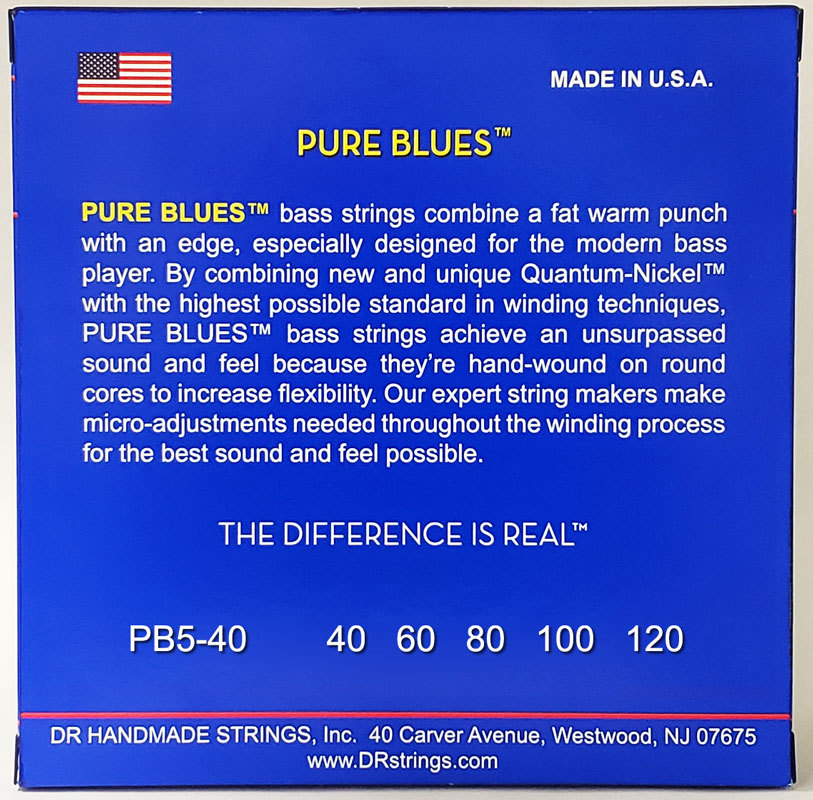 DR PB5-40 PURE BLUES - Quantum Nickel струны для 5-струнной бас-гитары, никель, 40 - 120