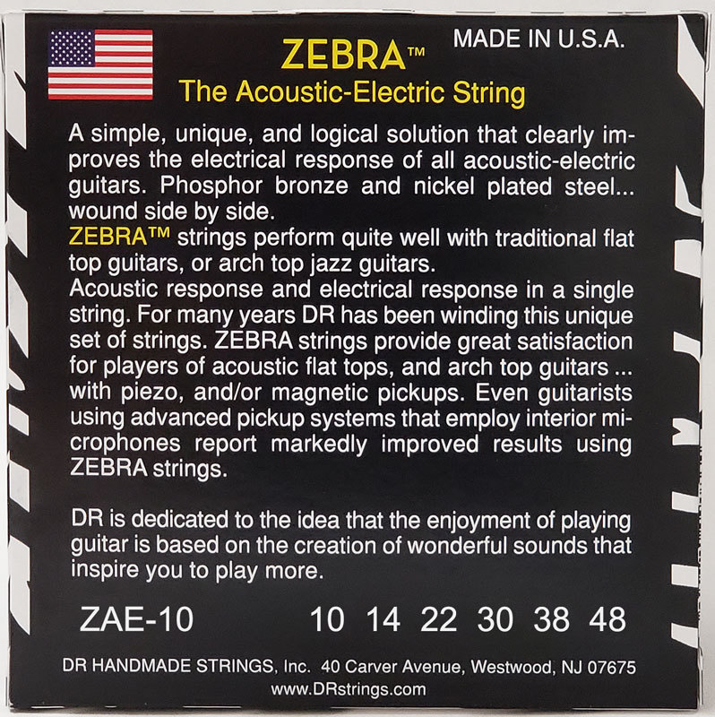 DR String ZAE-10 струны для акустических и электрических гитар 10-48 Lite ZEBRA