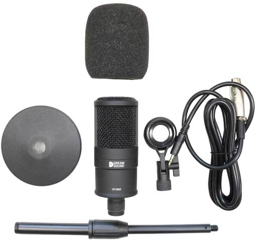 Dreamsound CP-200Z студийный конденсаторный микрофон, кардиоидная характеристика, 50 Гц – 20 кГц, чувств. -43 дБ ±2 дБ, макс. SPL 125 дБ, в комплекте ветрозащита, настольная стойка, кабель XLR