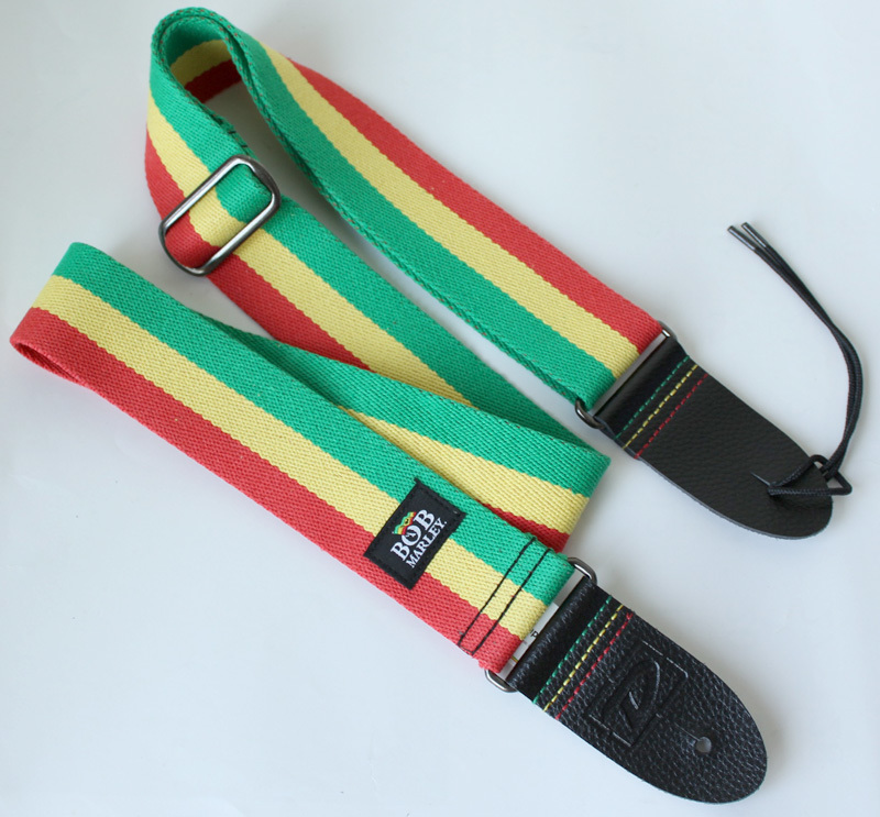 Замечательный ремень из прочной ткани, спустя несколько месяцев постоянных концертов и репетиций ни капли не выгорел и не обветшал. Ремень не выглядит дешево, ткань создает эффекта брендового качества получше любой кожи. Однако концы ремня (где он собсно крепится) сделаны вроде бы даже из настоящей кожи, тоже нареканий никаких, очень толстый материал, выглядит надежно. Металлические детали внушают доверие, хромированы и крепки. На каждом ремне имеется яркая символика Боба Марли. Из серии также купил медиаторы Dunlop из изображением Роберта, всё в коробочке. В дальнейшем буду пополнять свою коллекцию прочими ремнями серии Боба Марли.