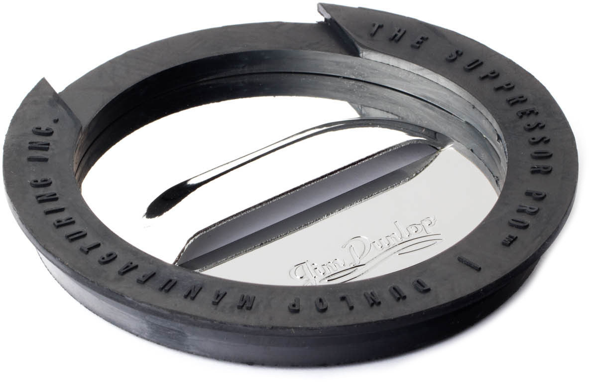 Dunlop Suppressor Pro понижают уровень обратной связи у электроакустических гитар без потерьв тембральной окраске вашего любимого инструмента. Разработанный гитарным мастером Todd A. Falk дизайн в виде жалюзей позволяет воздуху проходить через специальные отверстия. Это дает возможность верхней деке вибрировать и инструменту привычно «дышать». Так что натуральное акустическое звучание не пропадает. Эти полезные маленькие помощники для сцены изготовлены из легкого алюминия с мягкой резиной и подходят для большинства стандартных акустических гитар.