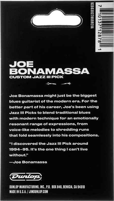 Для создания эмоционально резонансного диапазона выражений, от нежных мелодий до резких прогонов, Джо Бонамасса предпочитает медиаторы Jazz III. Имея подписание от самого мастера, набор медиаторов Bonamassa не только идеально подходит для игры в его стиле, но и для любого гитариста, кто ценит качество и неповторимость звучания.