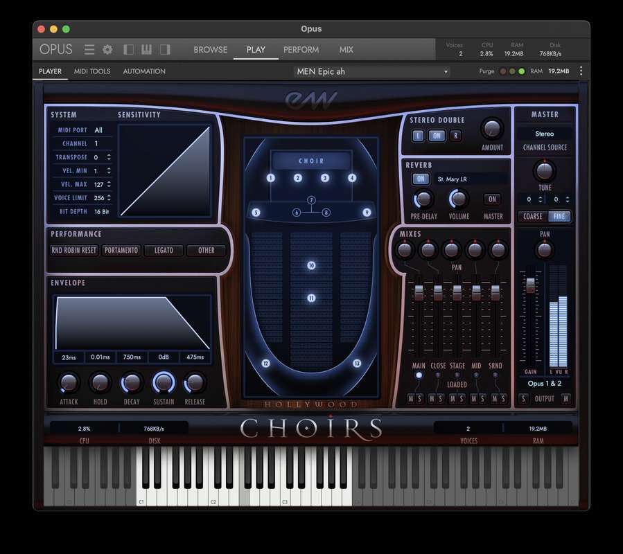 - Теперь включен в OPUS, с индивидуальными загрузками, пользовательскими переключателями клавиш и десятками MIDI-инструментов и микшерных эффектов.