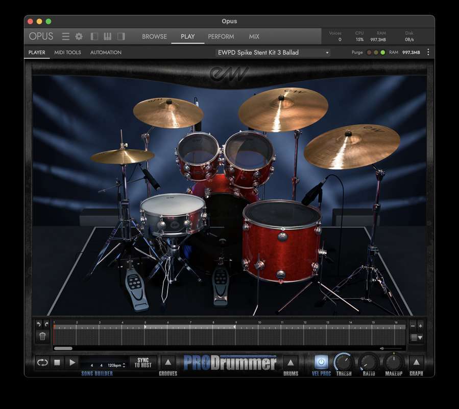 - Включает секвенсор Songbuilder для аранжировки полных барабанных треков в программе ProDrummer.