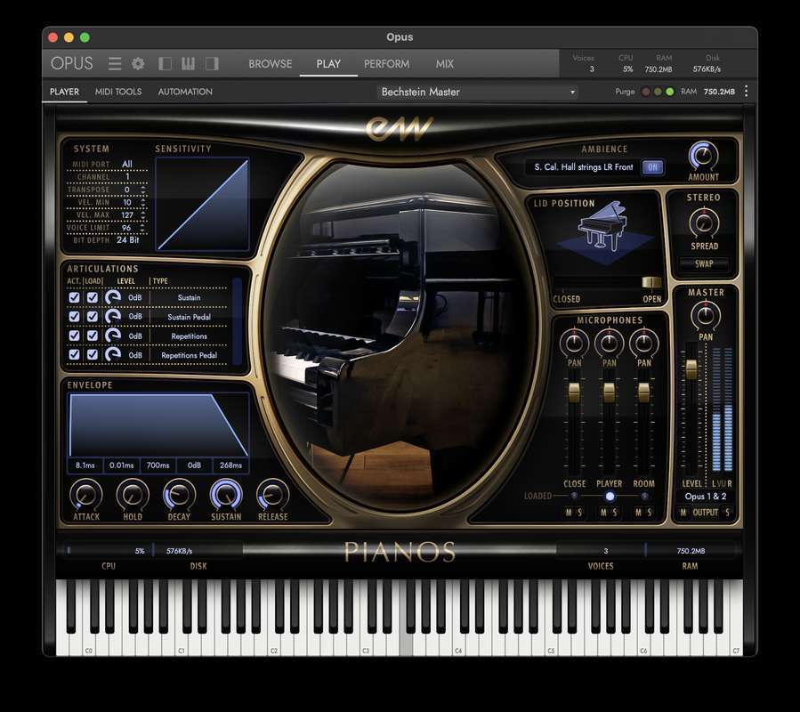- Резонанс - резонанс педали записан для каждой ноты на разных скоростях, а также при нажатой мягкой педали