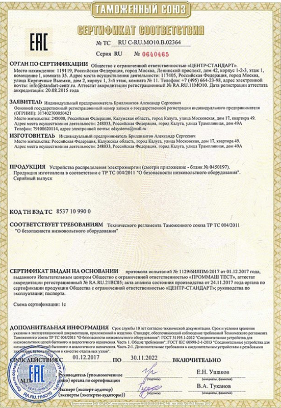 - тип: дистрибьютор питания;