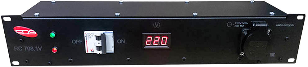 EDS RC708.1V - рэковый дистрибьютор питания, предназначенный для подключения нескольких единиц звукового, светотехнического, сценического или концертного оборудования. Устройство рассчитано на использование в помещениях и может монтироваться в рэк или в шкаф. Дистрибьютор осуществляет распределение входящего однофазного питания на восемь розеток PCE Schuko 16A, а подключение к сети осуществляется с помощью резинового кабеля длиной 2 м и обрезиненной вилки PCE Schuko 16A.